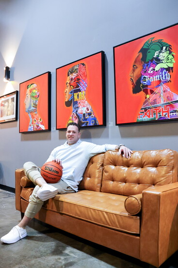 The main hallway now rotates curated pieces from artists across regions and styles. Beyond that, Basketball Social House has become a platform for local, female, and minority artists. “We really wanted to give people an opportunity to showcase their work,” Bemis says. “It’s always changing. Every time an artist comes to us, we’re like, yes let’s find a space.”