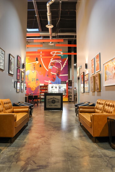 From the outside, Basketball Social House doesn’t announce itself loudly. Tucked away in a strip mall, it could easily be mistaken for just another neighborhood spot. But step through the doors, and the experience unfolds in layers... art-lined hallways, soaring ceilings, the hum of conversation, the echo of basketballs on polished courts, and the unmistakable energy of a place doing something entirely its own.