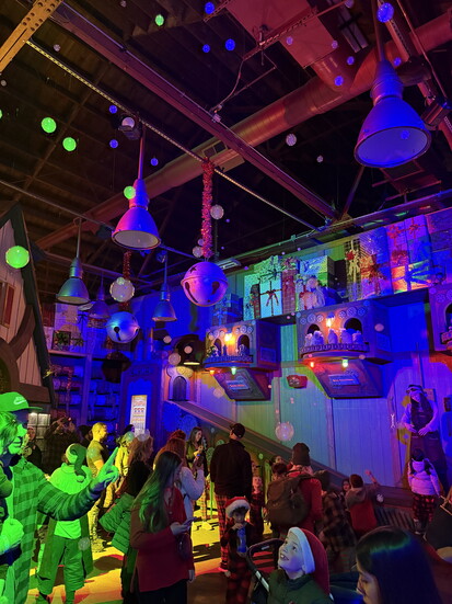 Each room in the North Pole tells its own story. In the Toy Hall of Fame, visitors walk alongside proud Toy Soldiers as they marvel at Santa’s most iconic creations. The Assembly Room invites children to join the elves in building toys, learning that the greatest part of giving comes from the heart. And when the scent of cocoa fills the air, it’s time for a stop at Mrs. Claus’s Bakery, where families can sip hot chocolate, chat with Mrs. Claus, and enjoy warm Yetti-O mini doughnuts while dancing with bakery elves. At Elf University, the learning never stops. Kids become honorary elves as they discover the secrets of flight that power Santa’s sleigh. In Santa’s Mailroom, letters from around the world are sorted with care, and each guest gets to write their own wish list before venturing into Area 47, Santa’s top-secret sleigh hangar.