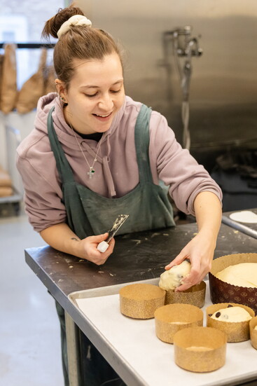 One type of bread that speaks to Sal’s Calabrian roots is their whole wheat loaf. It’s a hearty bread typically served in that region. “It’s special because we put whey in it from our cheese making instead of water. So, it’s not dairy-free, but it gets a little bit of fermentation from the cheese.”