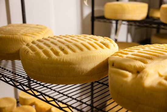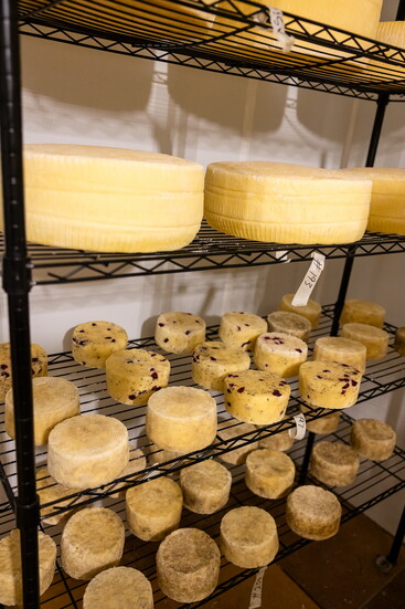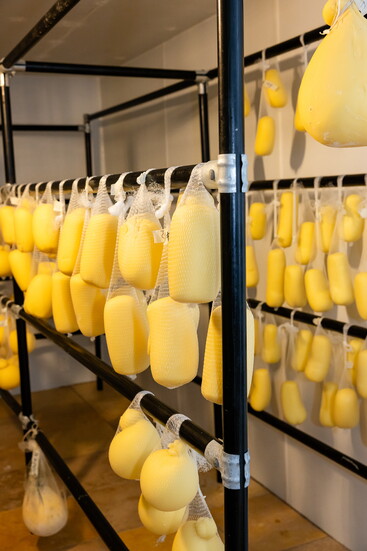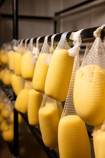 In a separate area of his cheese facility, there’s “the cave” where all the aging magic happens. It’s filled with hanging shapes of scamorza and caciocavallo. Shelves are stacked with wheels of primo sale, asiago, and toma. All his varieties are used in dishes served at his café, and “there are a few top restaurants we’re really proud to be in. The Summit House, Chef AJ, has been at many top restaurants in New Jersey. I met him when I first started. Wherever he’s moved, he’s taken our cheese.”