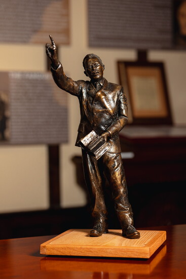 In fact, for ready donors, the organization is seeking sponsors for two proposed sculptures to kick-start the fundraising efforts. Beck commissioned Andrew Jumonville from Bloomington, Illinois, to create two maquettes—or scaled models—of the proposed life-sized sculptures. One is a standing male figure, representing the artists’ father, John Samuel Delaney, while the other is a young woman sitting on a church pew with two small children, representing the young boys with their mother, Delia. Upon completion, the sculptures will be prominently featured outside the museum in a landscaped section of the property.