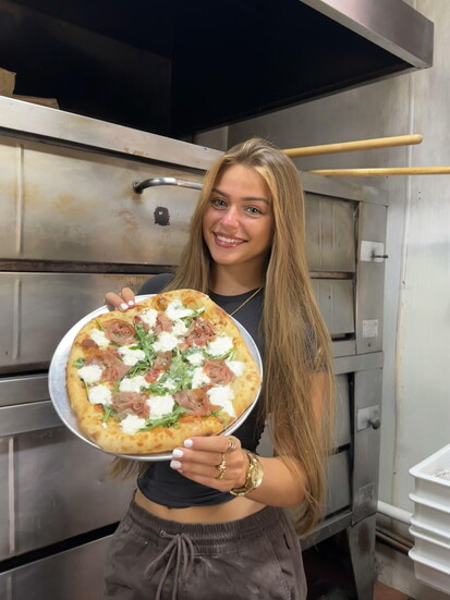 “My favorite pizza changes every other day,” she says. “But I always rotate back to a Capricciosa. It has sauce, mozzarella, olives, artichokes, mushrooms and it is topped with prosciutto after it cooks.”