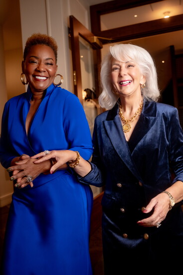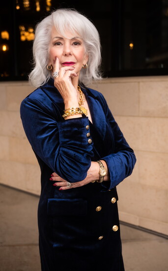 Linda: Navy Blazer Dress @shopsilhouette; Luxe Bangle $48 @serendipityhouseofstyle; Susan Shaw Gold Double Loop Chain Bracelet $89@serendipityhouseofstyle; French Kande Lea Necklace: Lourdes Crystal G $462 @serendipityhouseofstyle