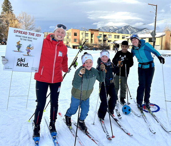 “The Community Winter Trails program has many partnerships across the valley that help us continue to increase the number of places we’re able to groom,” says Heidi Makoutz, BSF Nordic Adult Coordinator. These partnerships include the city of Bozeman, Bozeman Health, Bozeman Public Schools, Gallatin Valley Land Trust, Bridger Creek Golf Course, and the U.S. Forest Service. “On top of the sheer number of kilometers available for skiing, we have also worked hard to offer a variety of terrain, as well as some dog friendly options.”