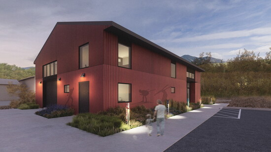 Plans for this multiuse include office space for 20 full-time staff; a community waxing room; a gathering space for events, meetings, and athletes to relax and do homework; an equipment tuning space for athletes and coaches to get ready for competitions; and a central hub for the BSF van fleet to live. =