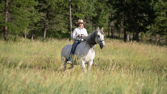 She’s helped countless people with their horses, whether it’s gentling or saddle training them, or even taking them back when someone else didn’t estimate the commitment or investment needed to work with these animals. Today, she reflects on the adventure she’s taken herself on, and the many horses that led the way, especially Mr. Knightly. “He’s such a good boy. He’s so light, you can ride him bridleless and he knows me and I know him.”
