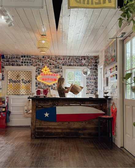 We also partner with local organizations like Aspire Accessories and Together at Mikey's place, a non profit that employs adults with disabilities. These artisans create handmade candles, soaps and other items that we purchase and sell at our shop. Each quarter we donate a portion of our proceeds to other organizations not just in Texas, but also nationwide that support and give back to the autism and disability community.