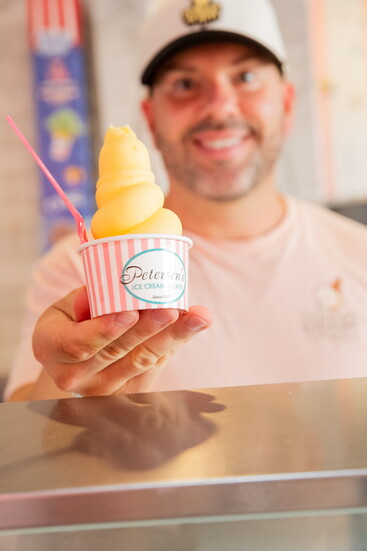 Of course, the ice cream itself is a huge part of the experience. Petersen’s is known for classic, beloved flavors like Superman, Blue Moon, Pothole, and Mackinac Island Fudge. But we also take pride in offering something for every palate, from adventurous options like Carrot Cake, Lemon Cheesecake, and Tennessee Toffee, to crowd favorites like Rush Hour. And then there’s the famous Pineapple Dole Whip, a flavor that checks every box—it’s gluten free, fat free, dairy free, vegan, and only 95 calories per scoop. It’s one of those treats that allows everyone, no matter their diet, to enjoy a taste of happiness.