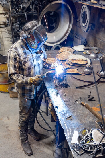 Whatever Fred is making, he tries to recycle as much metal as he can, finding elements of his pieces in Army-Navy surplus stores, junkyards, metal recyclers, and donations. “I like the idea of making something out of nothing,” Fred says. “It’s neat to see things have a new life, to be revitalized…taking something that was once considered trash or garbage and putting some effort and creativity into it, it becomes something of value.”