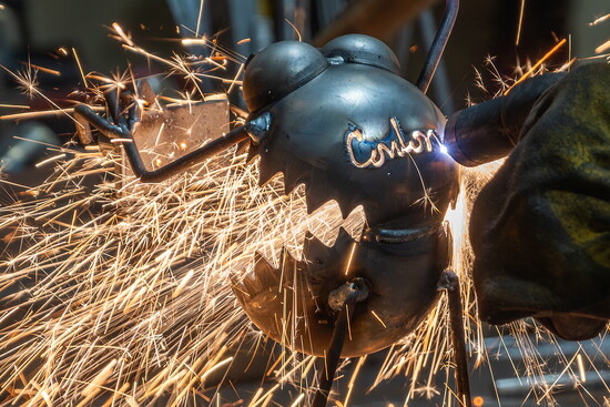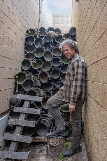 Fred’s introduction to metalwork came when he needed shelves to display his pottery. He taught himself to weld and made some metal racks for the studio. The pivotal moment came when he was at an Army-Navy surplus store and came across a giant pile of army helmets.