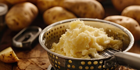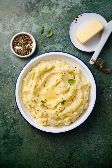 Layering is the key: Pass one-third of the hot potatoes through a ricer into a large bowl. Top with 1⁄3 of the melted butter, sour cream, mayo and warmed half-and-half. Sprinkle in a generous teaspoon of sea salt, white pepper and Veggie Heaven. Repeat two more times. Once the layers are in place, stir only once or twice, just enough to bring it together — this keeps them smooth, not gummy. Add more half-and-half as needed for desired creaminess.