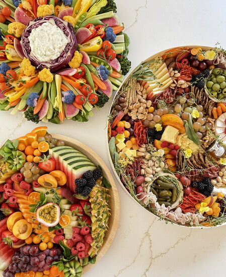 So what exactly can Grazed do for your holiday soirees? Think beyond the basic cheese plate. Stojkovic-Ristovski offers fully customized charcuterie boards with premium ingredients that change seasonally — from rich winter cheeses to vibrant summer produce. This holiday season, her Seasonal Winter Board featuring Cranberry Wensleydale, 24-month Prosciutto di Parma, truffle Marcona almonds and vanilla-sugared cranberries might just steal the spotlight from your centerpiece. Need vegan or gluten-free options? Done. Planning a themed celebration? She’ll create a bespoke board that matches your vision. Her elegant crudité platters and premium fruit boards have become client favorites, perfect for gifts or lighter fare.