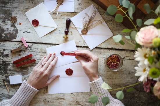 Since a handwritten letter is a gift then the envelope should be treated like wrapping one. Sealing a letter with a wax stamp is a beautiful way to turn a standard paper letter into the gift that it is.