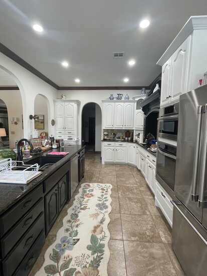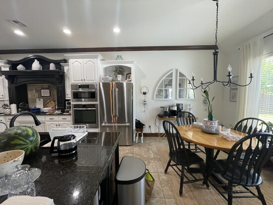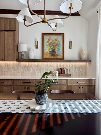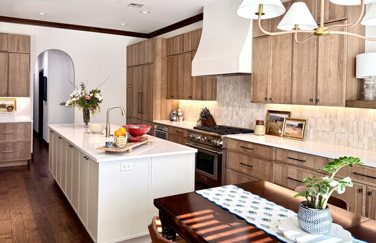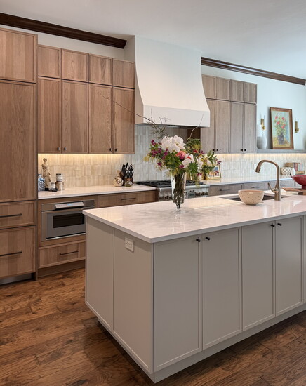 Specializing in residential kitchen, bath, whole-home renovations, and fully-custom cabinetry, 2026 marks Urban Kitchens’ 27th year in business. This Belmont Farms Chef’s Kitchen epitomizes a move toward staying in place as real estate prices rise. For ease of use and to accommodate the Owner’s storage needs, more drawers and organizing inserts were included in this remodel. Creative design showcasing family mementos, such as the Owner’s 50 year old still oil painting, and layers of lighting bring warmth to this traditionally utilitarian space. Stained hickory cabinets with hidden hinges and a paneled refrigerator anchor the large wall that opens to the family room while a creamy white island and quartz countertops reflect the light from the generous windows. The subtly-textured custom hood helps to break up the long wall of cabinets, while wood flooring provides a seamless transition between the kitchen and family room. With plenty of room for family gatherings, this kitchen will be a memory-making space for years to come! For design ideas and cabinet demonstrations visit Urban Kitchens’ Showroom at 4205 N Western Ave in Oklahoma City or call (405) 702.7747.