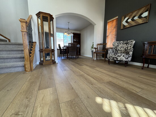 “Right now, textured LVP — luxury vinyl plank — is huge,” he says. “The thicker products that mimic real wood grain are incredibly popular. They give you that warm, natural look without the stress of scratching hardwood or staining carpet.”