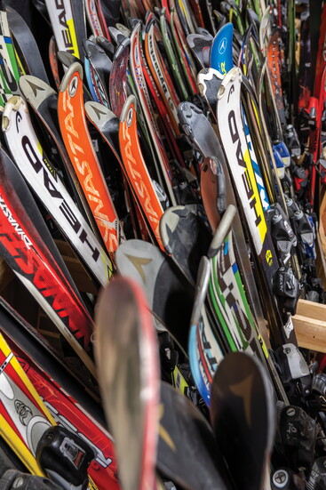 Ski Trucks’ community focus extends beyond the in-store experience. The business still holds fast to its founder’s “one man’s trash, another man’s treasure” mindset. Monte and Zoe partner with local recycling companies to grab gear on its way to the dump. “If it’s on the way to the landfill, we’ll process it,” Monte says. Sometimes, they even repurpose skis into custom furniture.