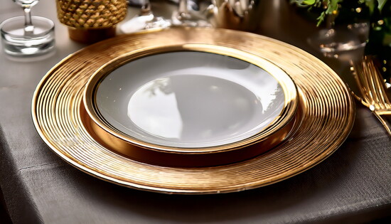 Gleaming gold-rimmed chargers frame every plate like fine jewelry. This subtle sparkle elevates dinnerware, layering in luxury that is timeless yet undeniably on-trend for the holiday season.