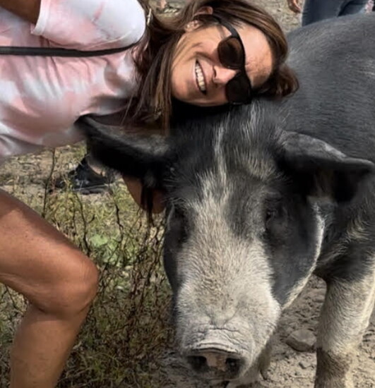 We have so many stories like that. Pecan was our largest pig. He spends his days foraging, sunbathing and getting belly rubs.