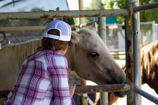 The current herd includes Sampson, now seven, and Q, a two-year-old filly adopted from Utah. “Sampson was slow to trust, but in two years he has blossomed,” Siarra says. “He’s comfortable with all our volunteers, respectful of boundaries, and cooperative with the farrier. Q came to us with significant physical trauma but quickly grew comfortable with touch. She’s eager, spirited, and playful, bringing such bright energy to our herd.”
